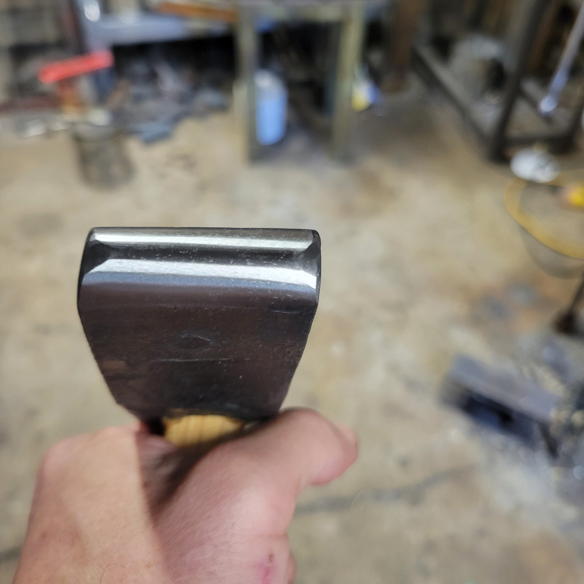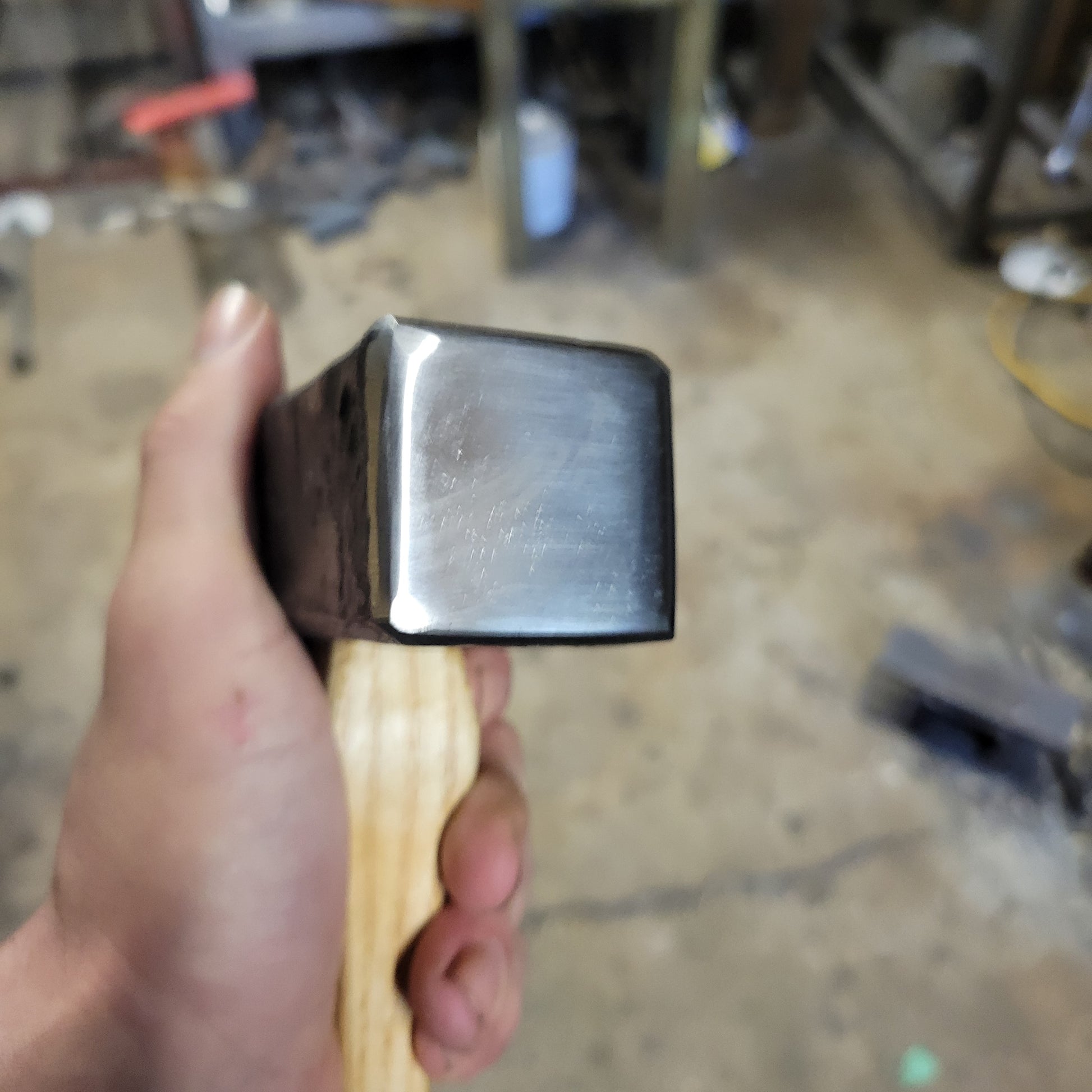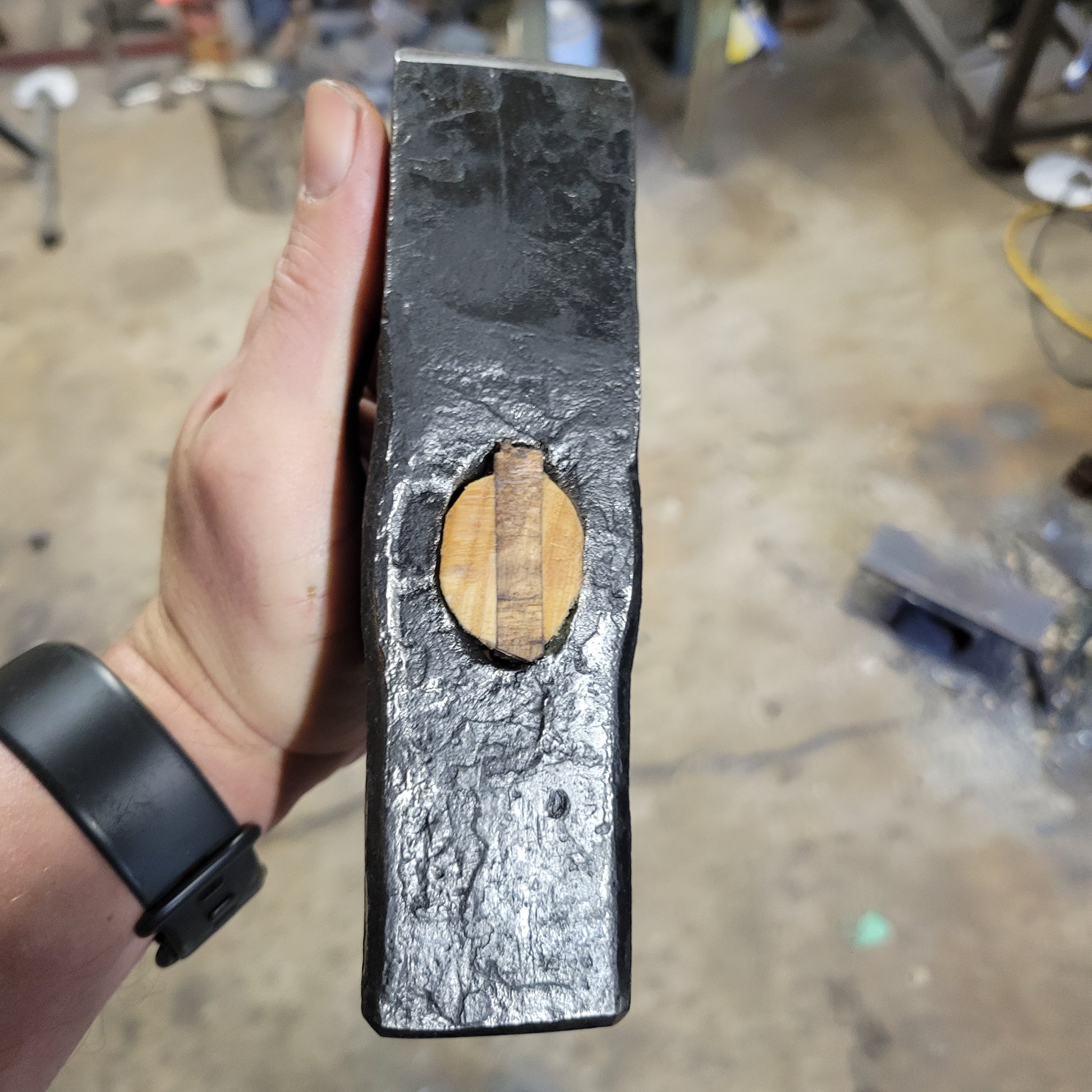 This Cross peen hammer is made from an old forklift tine and a rough cut piece of ash, which is harvested 15 minutes from my shop. Total weight with handle is 1.9kgs / 4.19lbs. handle length is 15". Head from peen to face is about 6 3/8". Both handle and head has been treated with linseed oil.
